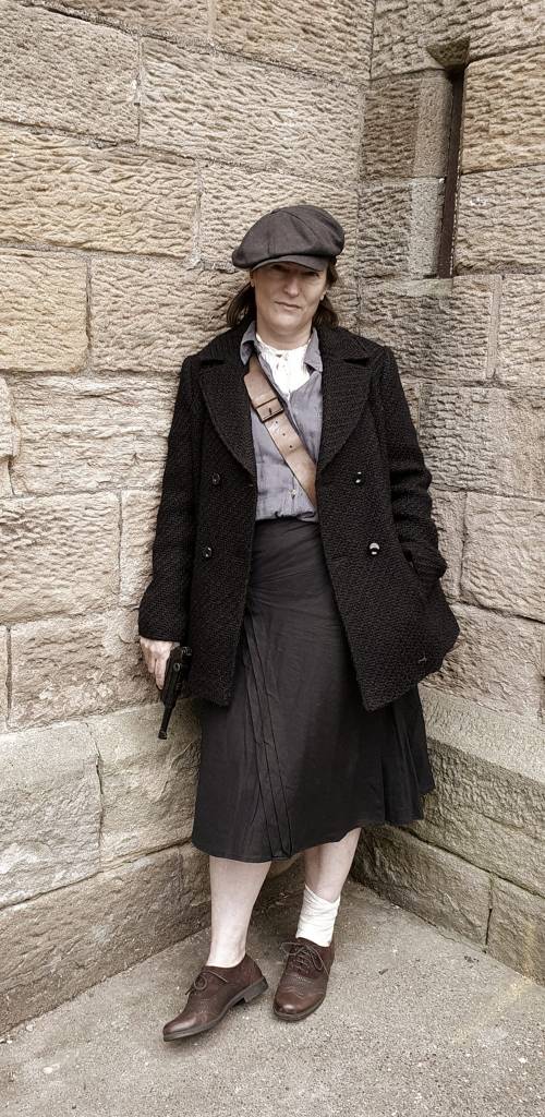 The bulk of my work in the last few years has been period specific for performing at heritage events or as a Supporting Artist for filming. I use fabrics appropriate to the era where budget allows, using a combination of hand and machine sewing on constructed pieces, and I enjoy the challenge of hunting down modern clothing that can be repurposed and reused for twentieth century projects.